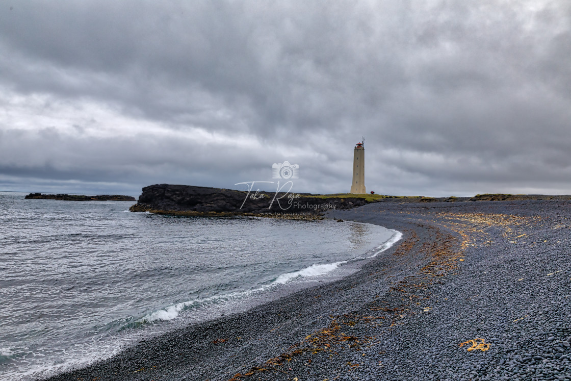 Malarrif Lighthouse with Black Pebbles on the beach